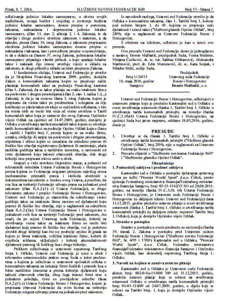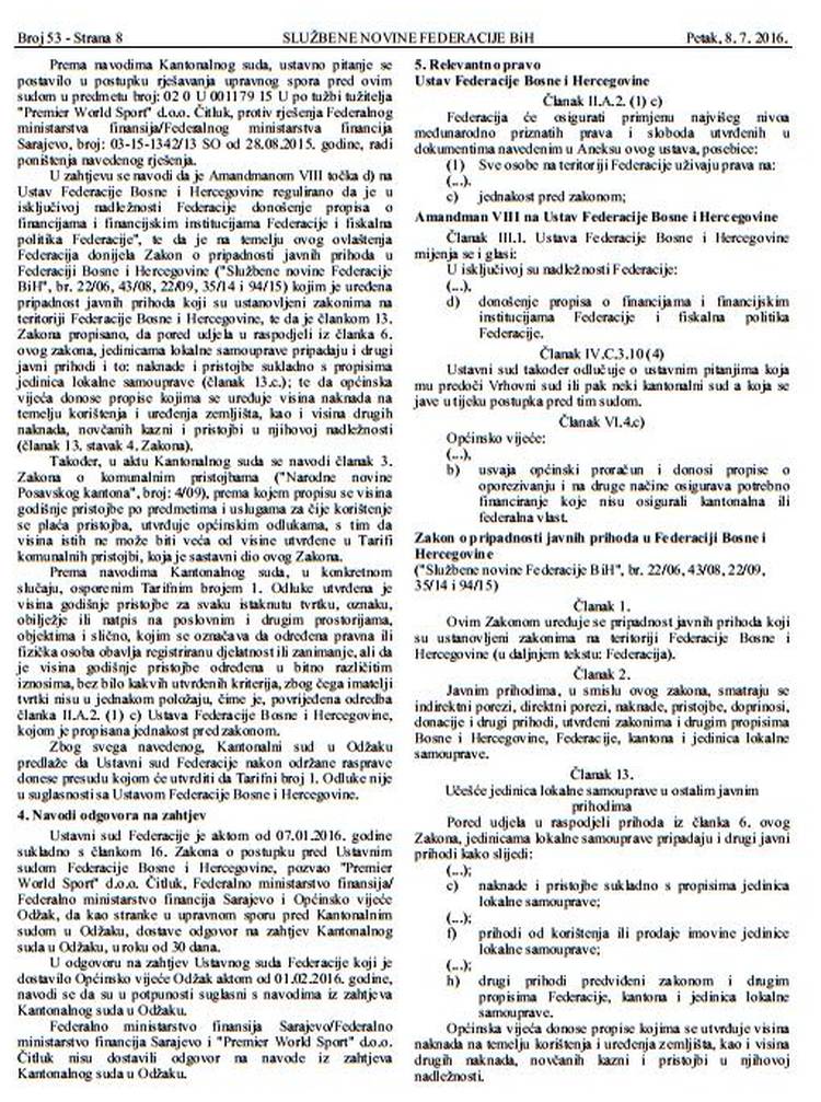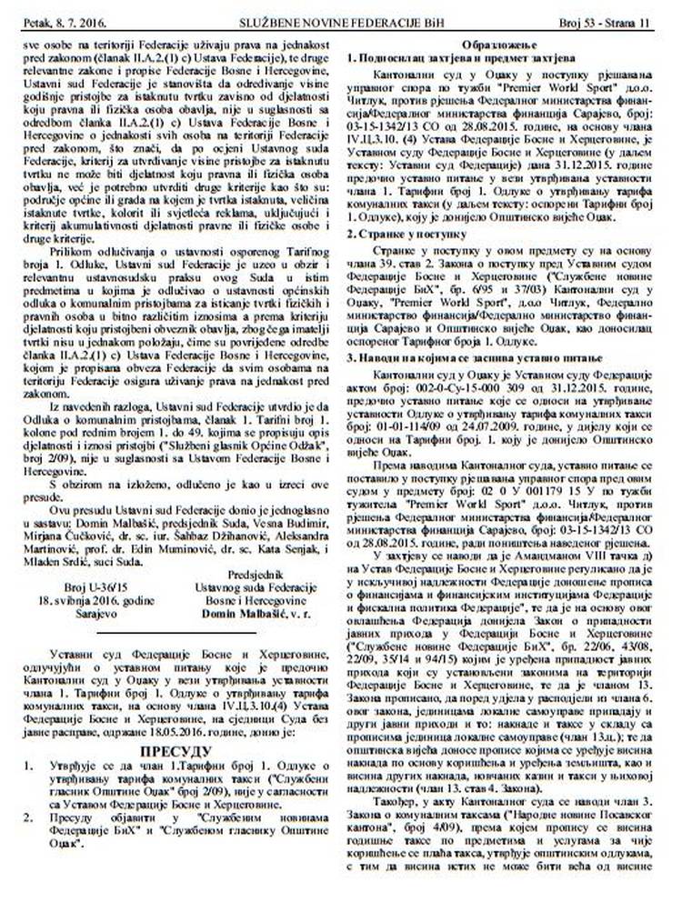 Prenosimo u cijelosti pismo upućeno Gradonačelniku i Predsjedavajućoj GV, kao i dio obrazloženja, kroz raniju odluku Ustavnog suda FBiH u slučaju “Općina Odžak protiv kladionica”.