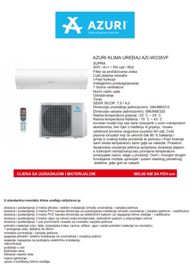 ISPOD MOŽETE PREUZETI NAŠ AKCIJSKI LETAK ZA POSEBNO IZDVOJENE KLIMA UREĐAJE SA UKLJUČENOM MONTAŽOM.