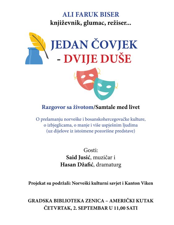 Književnik, reditelj i glumac Ali Faruk Biser, koji živi i radi u Norveškoj, gost je prigodnog programa pod nazivom JEDAN ČOVJEK – DVIJE DUŠE.
