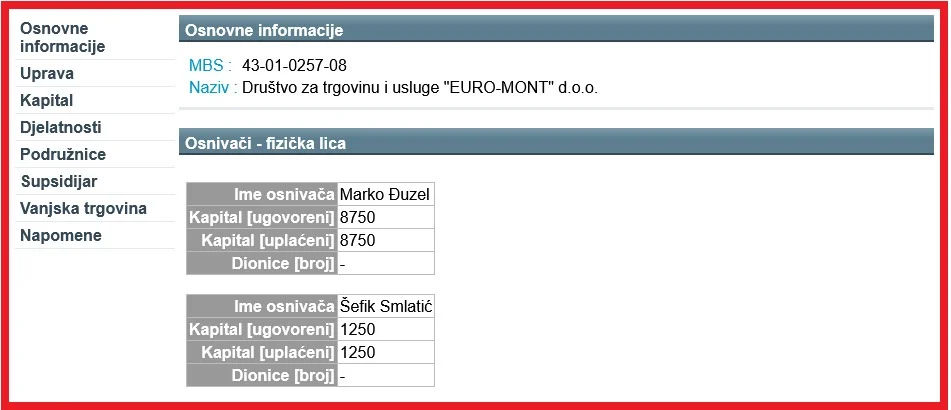 „Euro-mont“ Zenica proizašla je iz istoimene firme prethodno registrovane u Žepču. Suvlasnici prema sudskom registru su Marko Đuzel (87,5%)i Šefik Smlatić (12,5%) koji je i direktor firme.
