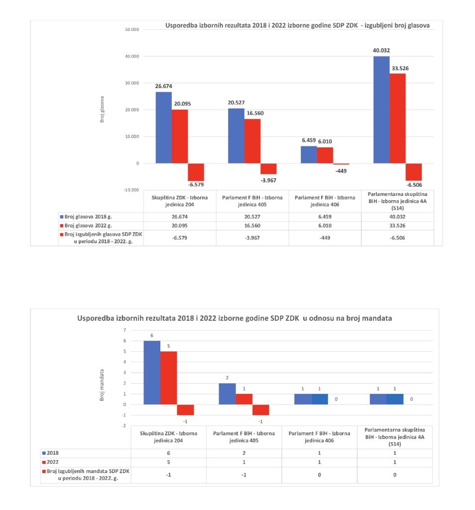 Analizom i usporedbom izbornih rezultata 2018 i 2022 izborne godine vrlo lako se može uvidjeti da je kantonalni SDP na čelu sa Mahmutagićem za Skupštinu ZDK – Izborna jedinica 204, na općim izborima 2022.g osvojio 20.527 glasova, odnosno 6147 glasova manje u odnosu na izbore 2018.g. kada je SDP ZDK osvojio 26674 glasa. Kada se to preračuna u mandate, SDP ZDK je sa 6 mandata koje je osvojio 2018.g. Mahmutagićevim rukovođenjem 2022.g. pao na 5 mandata.