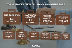 Ko je među deset najprofitabilnijih advokatskih kuća u BiH, ostvarena dobit 6.838.647 KM