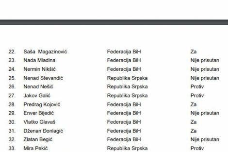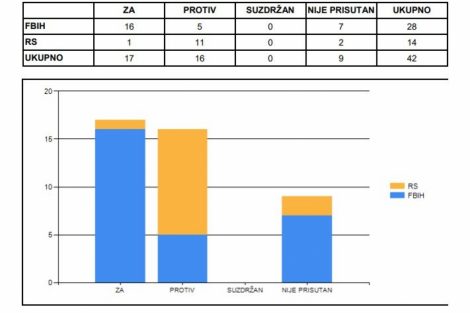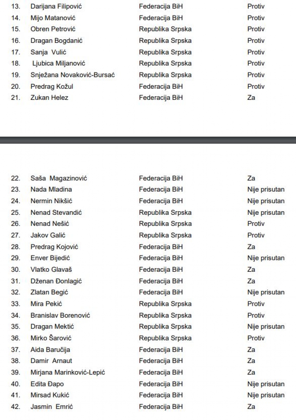 Protiv bili zastupnici HDZ-a BiH i kao i skoro svi zastupnici koji dolaze iz RS-a.