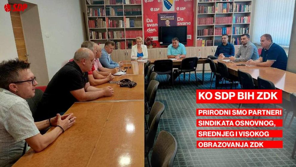 Danas je u prostorijama KO SDP ZDK održan sastanak između delegacije predstavnika Sindikata osnovnog, srednjeg i visokog obrazovanja predvođene predsjednicima Selvedinom Šatorovićem i Dževadom Hadžićem i predstavnika KO SDP ZDK predvođene predsjednikom KO SDP ZDK Mirsadom Mahmutagićem, ministrima u Vladi ZDK, Draženkom Subašić, Danijelom Pašićem, Benjaminom Sinanovićem i predsjednikom Kluba zastupnika SDP BiH u Skupštini ZDK Damirom Memićem.