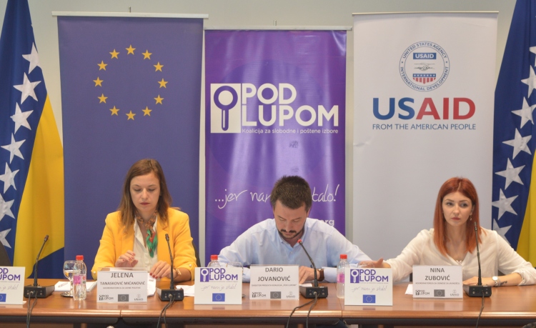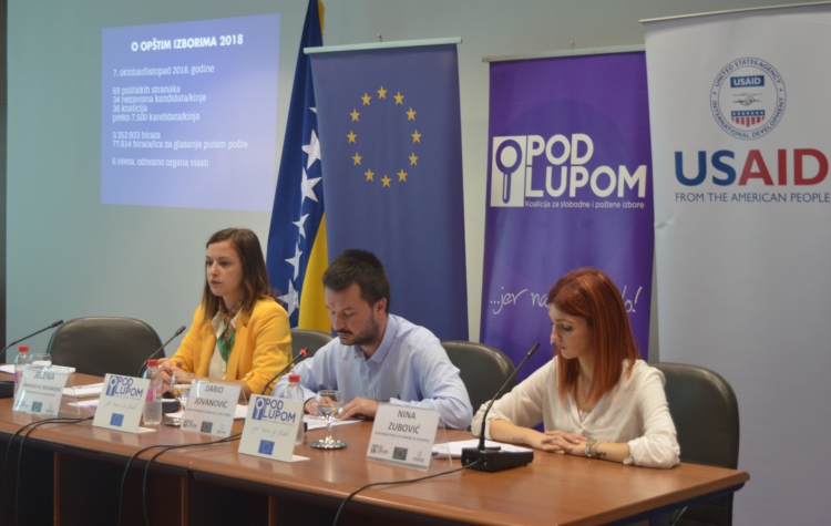 Koalicija “Pod lupom”: Kršenja Izbornog zakona BiH sve brojnija, a sankcije izostaju – Koalicija za slobodne i poštene izbore ”Pod lupom”, koja posmatra predizborni period u BiH, je na današnjoj press konferenciji u Sarajevu prezentovala Prvi preliminarni izvještaj o dugoročnom posmatranju Općih izbora 2018. koji obuhvata period od 23.07.-02.09.2018. godine a dostupan je javnosti na zvaničnoj web stranici Koalicije www.podlupom.org.