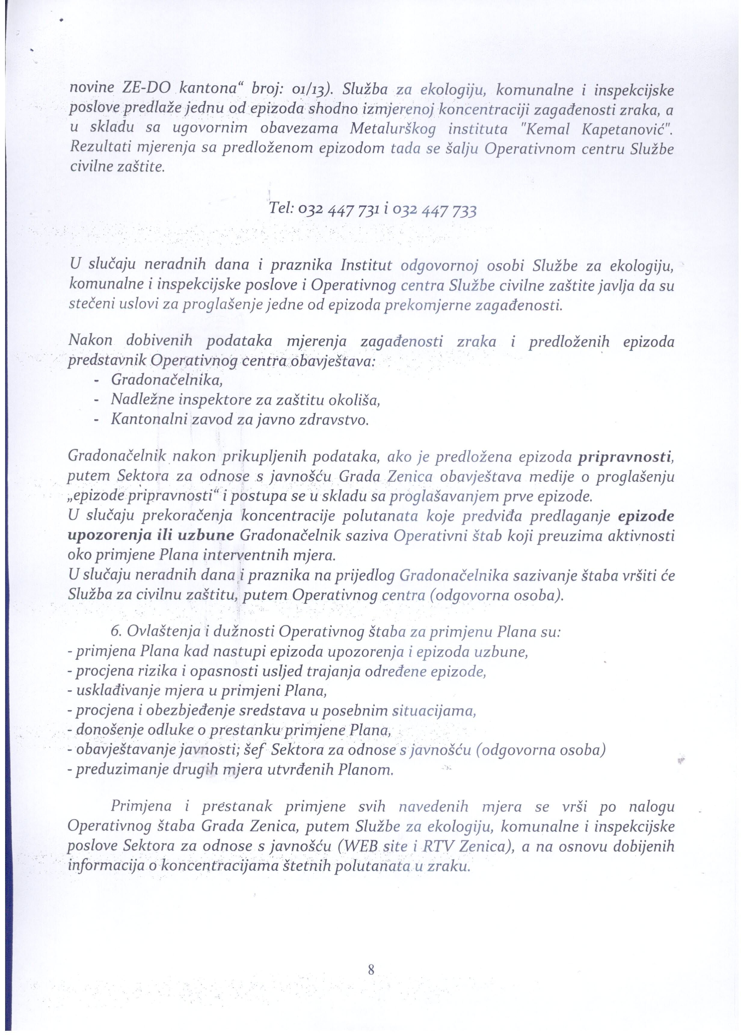 Pošto smo ove zime u nekoliko navrata pošteno premašili one limite od 500 mikrograma/m3 SO2 bez proglašenja uzbune, pitanje čemu uopšte služe ovakvi ispisani papiri ( dokumenti, propisi ili zakoni to nisu jer ih niko ne zarezuje ni prebijene pare). Građani u Zenici znaju zašto nije proglašavana uzbuna. Zbog onog famoznog potpisanog papira od strane gradske uprave po kojoj u toj situaciji Arcelor Mittal treba smanjiti proizvodnju, prestati koristiti ugalj i preći na loženje zemnog plina. Da se ne bi smanjio profit mile nam kompanije, grad Zenica treba da plati račun za utrošeni zemni plin. Najkraće rečeno, građani ako hoćete čist zrak, taj luksuz platite iz svog džepa kao vaš doprinos očuvanju nivoa zarade Mittala iako uopšte ne doprinostite povečanju zagađenja po tom osnovu. Pošto Arcelor MIttal u navedenom operativnom planu uopštene ne egzistira, sva krivica i obaveze prelaze na stranu žrtve i žrtava – grada Zenice i građana ovog grada. Iako izložimo max. 15.000 T uglja godišnje a Mittal preko 550.000 T svu godinu, građani još malo neće smjeti ložiti ugalj, nema vožnje GOLF-ova 1,2 itd, nema vozanja koliko hoćete, zabrana rada čevabđinicama i nargila-barovima, nemojte izlaziti ako ne morate, nemojte se baviti nikakvim fizičkim naporima jer morate više disati i ako ikako možete dišite na rezervi.