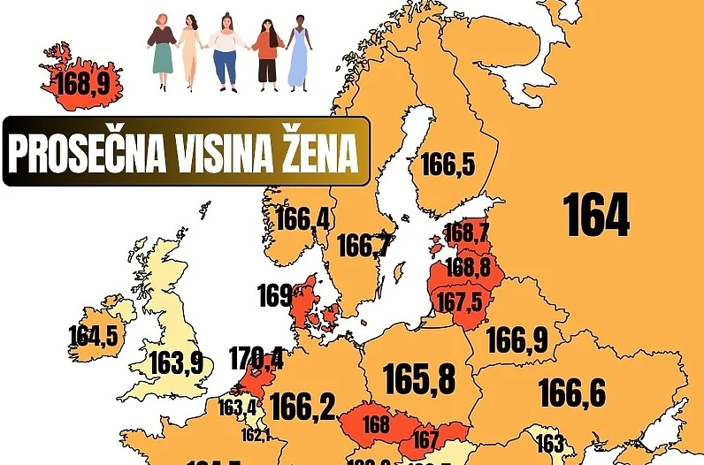 Interesantno je da su žene iz Bosne i Hercegovine u vrhu liste s prosječnom visinom od 167,5 centimetara. Najviše žene žive u Nizozemskoj gdje je prosjek 170,4 centimetra.