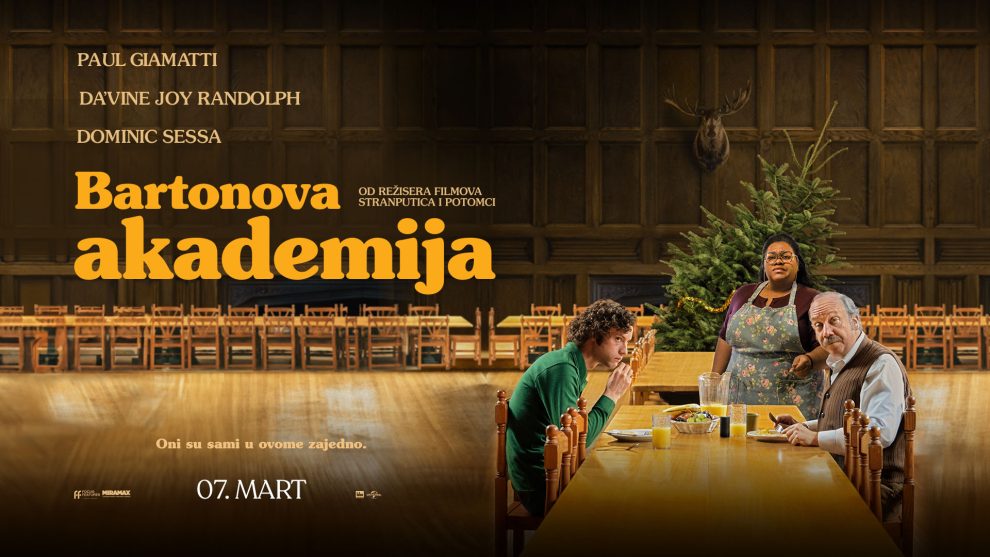 Proslavljeni reditelj Alexander Payne predstavlja nam svoj najnoviji film “BARTONOVA AKADEMIJA” (THE HOLDOVERS). U centru priče se nalazi skromni profesor (Paul Giamatti) prestižne američke škole, koji je primoran da tokom božićnog raspusta ostane u kampusu i vodi računa o nekoliko učenika koji nemaju gdje da odu za praznik. Vremenom, on razvija neočekivanu povezanost sa jednim od njih, emotivno oštećenim, veoma pametnim, problematičnim učenikom (mladi glumac Dominic Sessa) i školskom kuharicom koja je izgubila sina u Vijetnamu (dobitnica Zlatnog globusa, Da’Vine Joy Randolph).