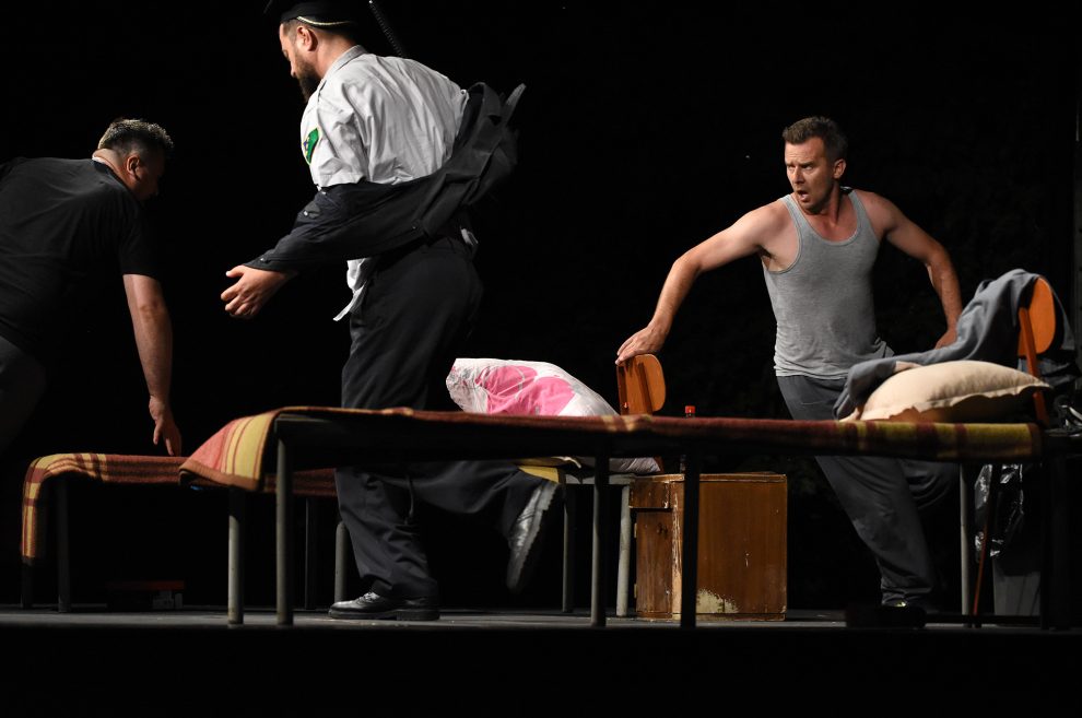 U predstavi igraju Nusmir Muharemović, Irfan Kasumović, Mirza Mušija.
