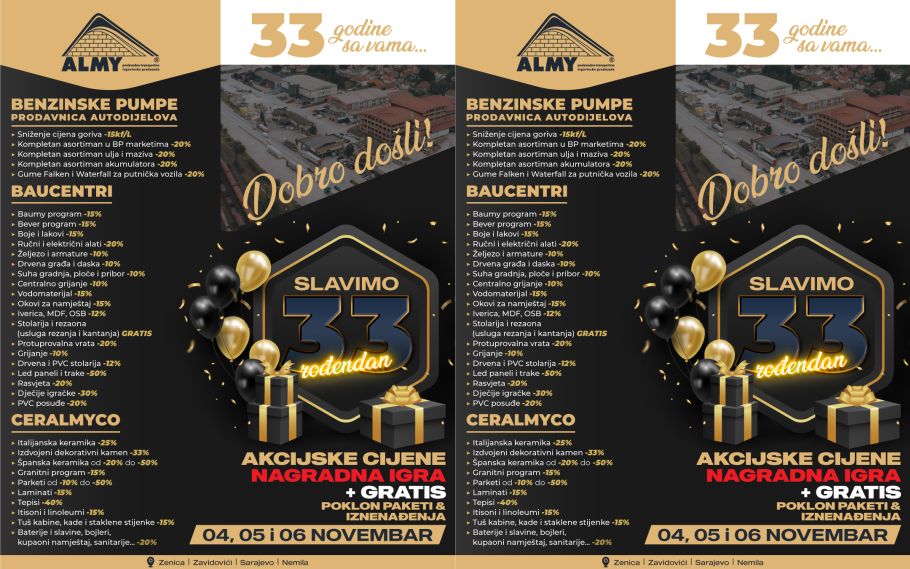 Kompanija Almy slavi 33. rođendan! 3️⃣3️⃣ 🎉🎊🎈