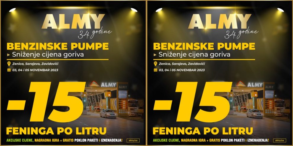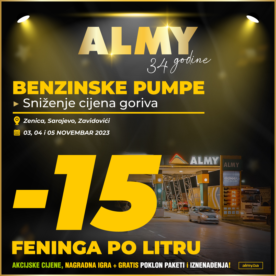 Kompanija Almy slavi 34. rođendan: Sniženje cijena goriva- Kompanija Almy slavi 34. rođendan!