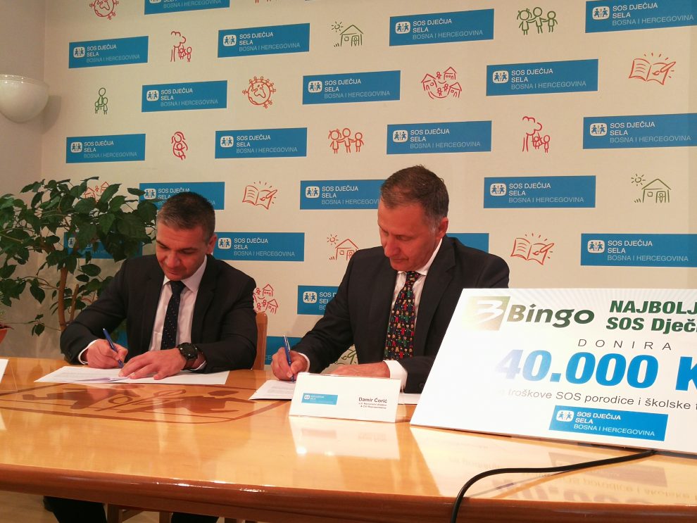 Kompanija Bingo Tuzla šestu godinu najbolji prijatelj SOS Dječijih sela BiH – Šestu godinu zaredom kompanija Bingo se upisuje na listu najboljih prijatelja organizacije SOS Dječija sela BiH, a današnjim potpisivanjem Ugovora o donaciji između Edina Ibrahimovića, izvršnog direktora za biznis operacije kompanije Bingo i Damira Ćorića, v.d. nacionalnog direktora SOS Dječijih sela BiH i CVI Representative1 ozvaničen je nastavak izuzetnog partnerstva. Uručenjem donatorskog čeka u vrijednosti 40.000,00 KM Bingo je još jednom potvrdio opredijeljenost za kreiranje održivih promjena u životima djece iz najranjivijih kategorija društva.