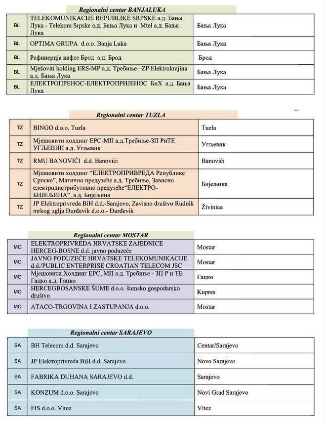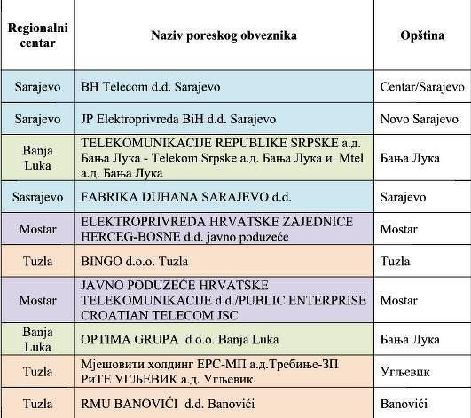 U tablicama ispod pogledajte pregled po pet obveznika iz svakog regionalnog centra UIO koji su u prvoj polovini 2017. godine izvršili najveće uplate poreza da dodanu vrijednost u BiH (ukupno su uplatili 492 miliona KM).