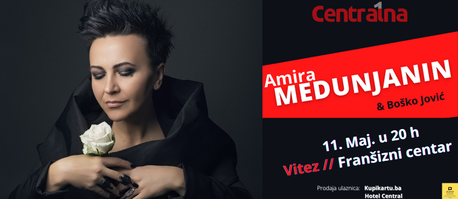 U prekrasnom i intimnom ambijentu kongresne dvorane Franšiznog centra u Vitezu dana 11.05.2022. godine nastupit će cijenjena sarajevska i bosanskohercegovačka umjetnica Amira Medunjanin, uz pratnju Boška Jovića.