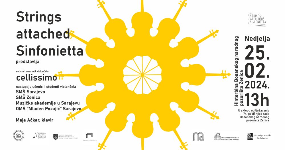 Učenici i studenti violončela iz Srednje muzičke škole “Sarajevo”, Srednje muzičke škole “Zenica”, Osnovne muzičke škole “Mladen Pozajić” i Muzičke akademije u Sarajevu će se predstaviti na ovom koncertu.