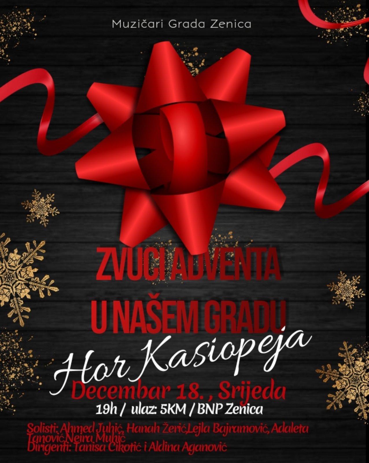 Koncert gradskog hora “Kasiopeja” – 18. decembar 19h – KONCERT GRADSKOG HORA“ KASIOPEJA“ ZENICA