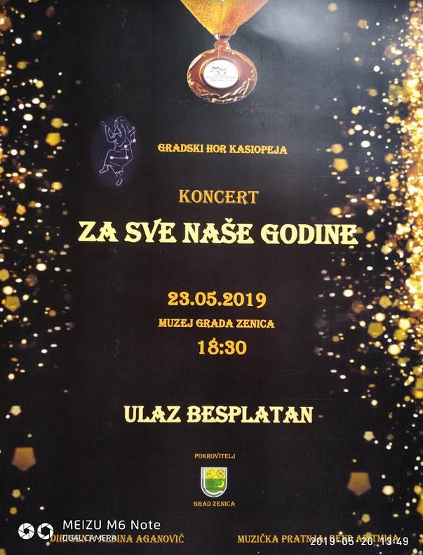 Koncert Gradskog hora „KASIOPEJA“ – U četvrtak 23.05.2019.godine u 18,30 sati u Muzeju Grada Zenica, Gradski hor Kasiopeja Zenica održat će se promo koncert pod nazivom „ZA SVE NAŠE GODINE“.