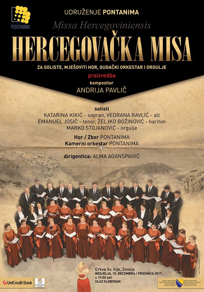 Koncertna izvedba HERCEGOVAČKE MISE 10. decembra, u 19 sati u crkvi sv. Ilije Proroka – U nedjelju, 10. decembra, u 19 sati u crkvi sv. Ilije Proroka u Zenici bit će koncertna izvedba HERCEGOVAČKE MISE (Missa Hercegoviensis) kompozitora Andrije Pavliča.
