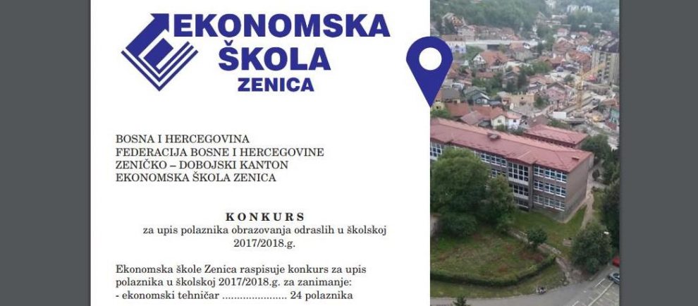Konkurs: obrazovanje odraslih – Ekonomska škola raspisala konkurs za upis 24 buduća ekonomska tehničara – BOSNA I HERCEGOVINA – FEDERACIJA BOSNE I HERCEGOVINE – ZENIČKO – DOBOJSKI KANTON – EKONOMSKA ŠKOLA ZENICA – K O N K U R S za upis polaznika obrazovanja odraslih u školskoj 2017/2018.g.