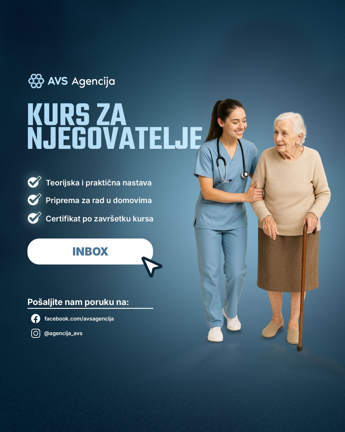 AVS Agencija organizuje stručnu obuku za njegovatelje/ice, uz praktičan program koji vam otvara vrata rada u inostranstvu.