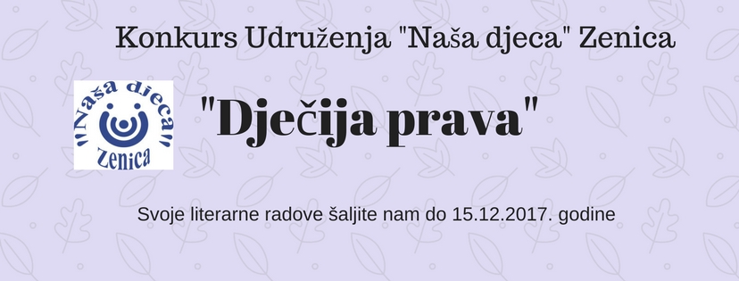 Konkurs Udruženja “Naša djeca” Zenica za literarne radove na temu “Dječija prava” – Dragi dječaci i djevojčice, Udruženje “Naša Djeca” Zenica poziva vas da napišete svoje literarne radove na temu “Dječija prava”.