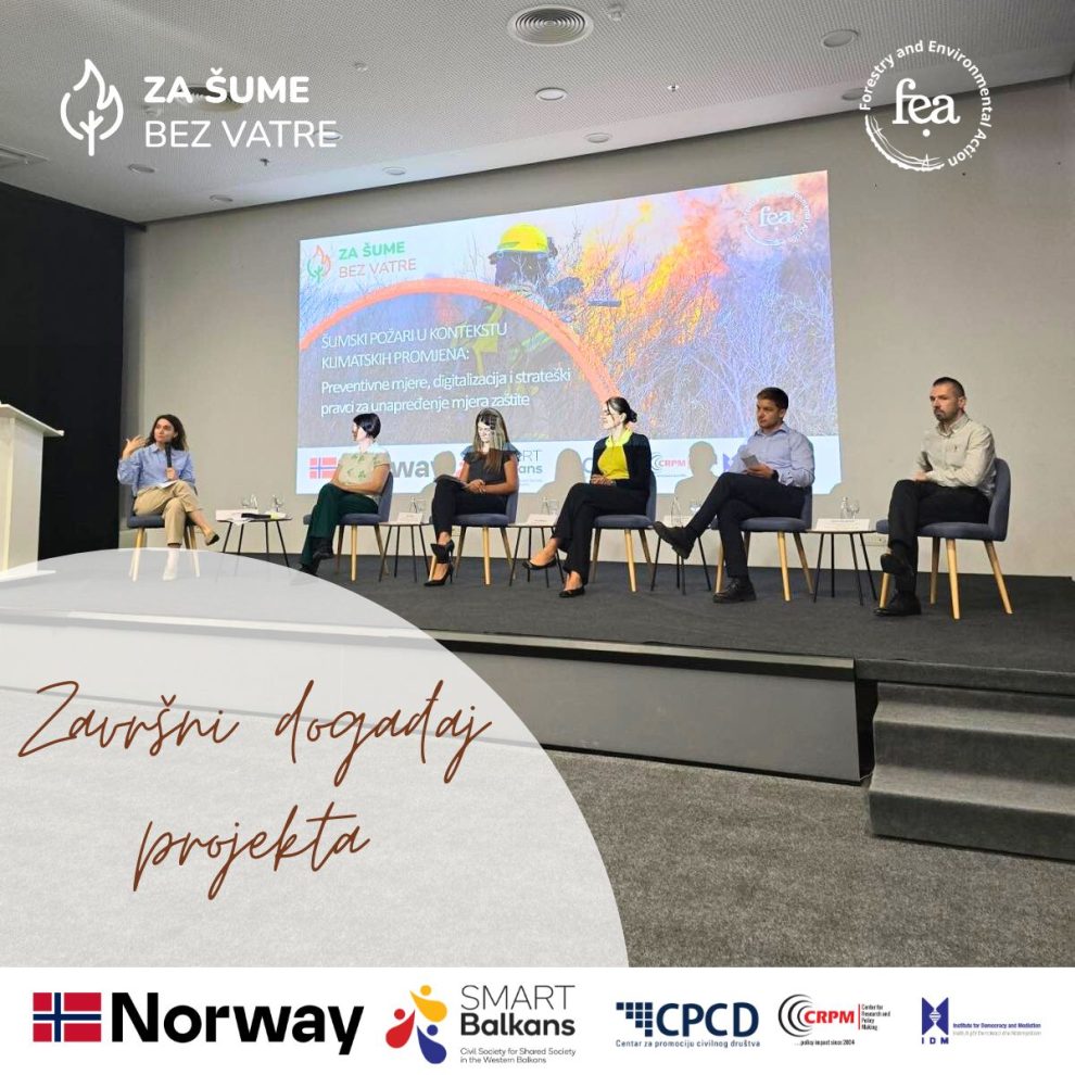 Projekat „Zajednička akcija za smanjenje povećanog rizika od šumskih požara po prirodu i ljude u kontekstu klimatskih promjena u Bosni i Hercegovini“ sprovodi FEA – Inicijativa za šumarstvo i okoliš, a finansiran je od strane Ministarstva vanjskih poslova Kraljevine Norveške u okviru programa SMART Balkans – Civilno društvo za povezan Zapadni Balkan.