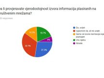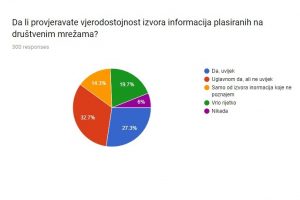 Obzirom da je znatan broj ljudi odgovorilo da nije upoznato sa terminom „medijska pismenost“ (23%), onda možemo reći i da je poprilično zadovoljavajući podatak da 60% anketiranih uvijek ili uglavnom provjerava informacije plasirane na društvene mreže, a njih 56,6% uglavnom ili uvijek provjerava informacije iz više različitih izvora.