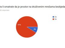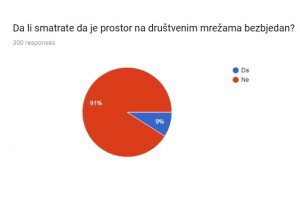 Tako 91% ispitanika smatra da prostor na društvenim mrežama nije bezbjedan, ali u daljim odgovorima možemo vidjeti da ne postupaju na adekvatan način u svrhu prevencije neželjenih pojava.