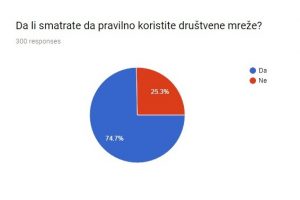 Uprkos ovim rezultatima koji u nesklad stavljaju ono što ispitanici smatraju da treba činiti i kako se ponašati na društvenim mrežama i kako se zaista ponašaju, čak 74,7% ispitanika smatra da pravilno koristi društvene mreže.