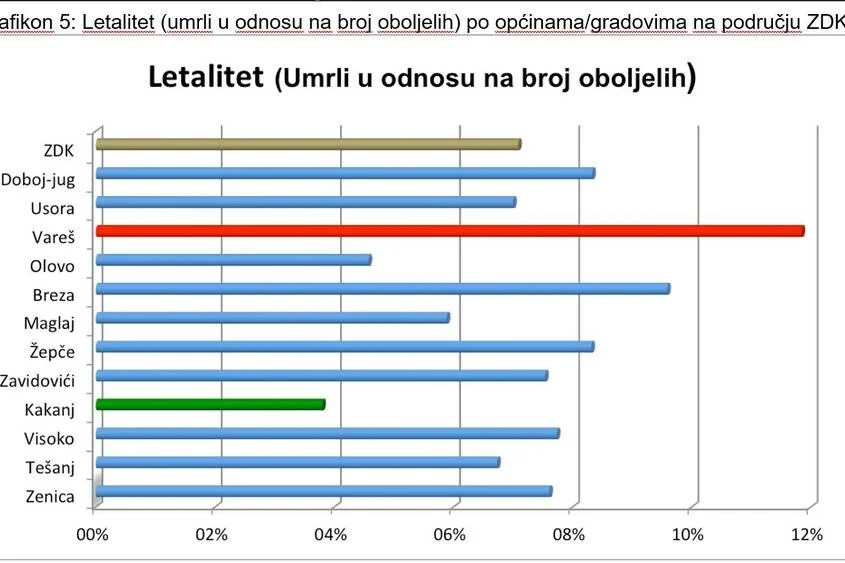 “Do kraja prve sedmice aprila ukupno je testirano 61.150 osoba u ZDK, od čega PCR 54.500 i Antigenskih 6.680. Potvrđeno prisustvo SARS-CoV-2 kod 12.695 osoba (9.430 PCR i 3.265 Antigenski). Zaključno sa 7. aprilom u ZDK je aktivno 1.620 slučajeva pozitivnih na SARS-CoV-2 (potvrđeno PCR testiranjem), i 410 aktivnih slučajeva potvrđenih brzim antigenskim testiranjem, pa je ukupna broj aktivnih slučajeva 2.030”, kazali su nam iz Instituta za zdravlje i sigurnost hrane Zenica.
