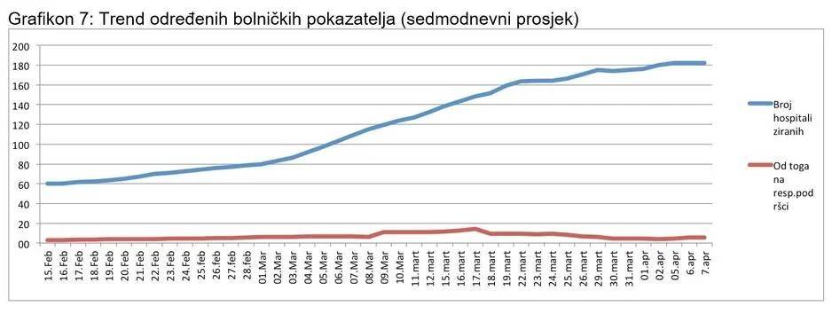Kada situaciju posmatramo sa aspekta broja umiranja, u zadnjoj sedmici je zabilježen manji broj umrlih nego u prethodnih sedam dana, a i krivulja sedmodnevnog prosjeka pokazuje blago usporenje porasta broja umrlih. Posebno je situacija složena sa aspekta opterećenja bolničkih kapaciteta, zbog povećanog broja teških kliničkih stanja kod velikog broja hospitaliziranih”, zaključili su iz INZ-a.