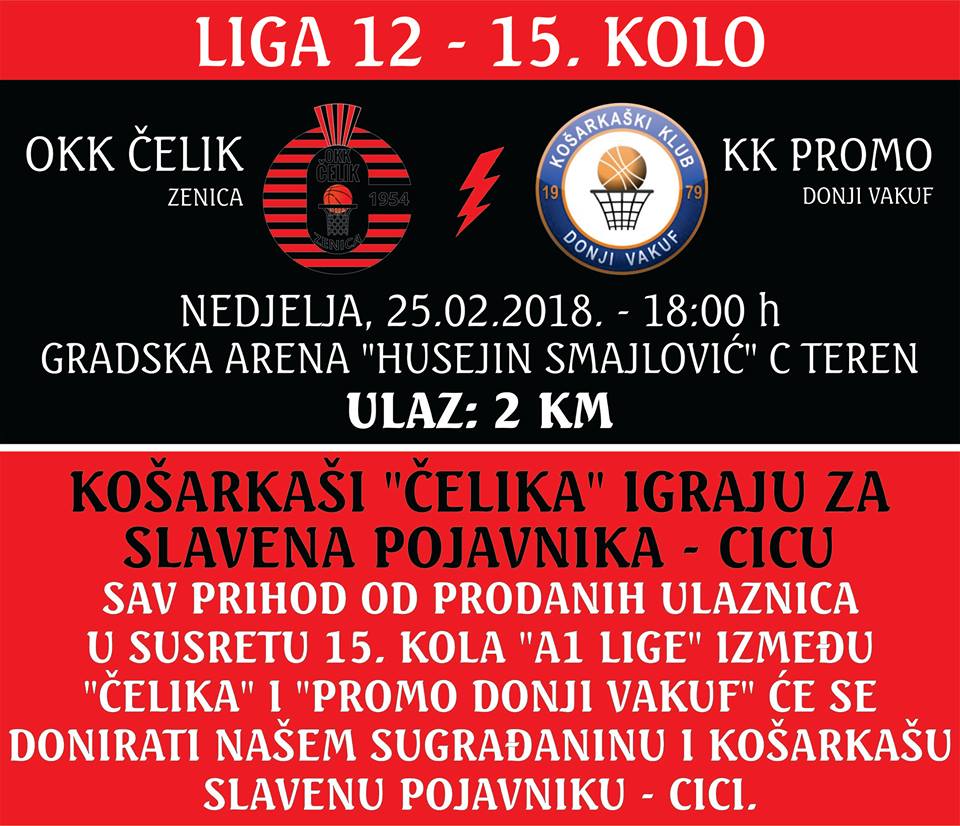 Košarkaši „Čelika“ će u nedjelju 25.2.18. na domaćem terenu u okviru 15. kola „A1 Lige“ sa početkom u 18h, dočekati košarkaše „Promo Donji Vakuf“.