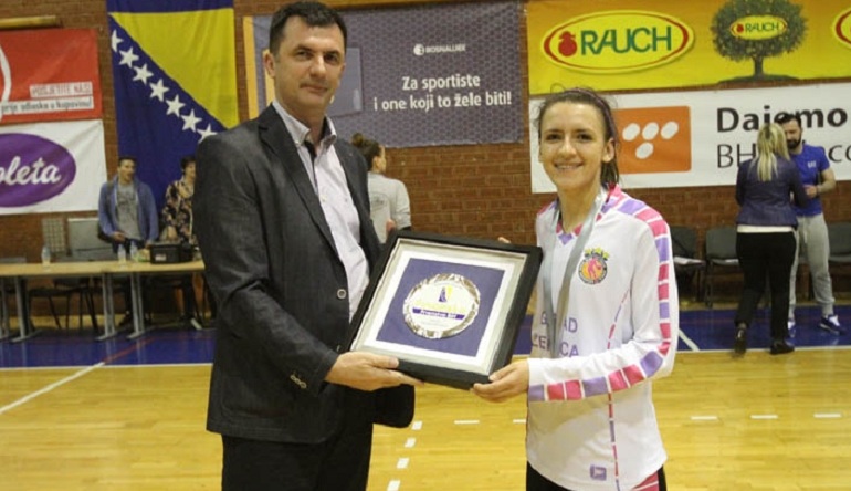 Košarkašice Play off-a večeras su osvojile drugu uzastopnu titulu prvaka BiH, a medalje finalistima i pehar kapitenu sarajevskog tima, Anđeli Delić, uručio je član UO KS BiH, gospodin Mevludin Delibašić. tekst i foto – BH Basket