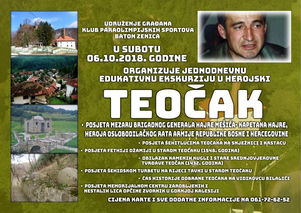 KPS Baton: jednodnevna edukativna ekskurzija u herojski Teočak – Udruženje građana Klub paraolimpijskih sportova „Baton“ Zenica organizuje jednodnevnu edukativnu ekskurziju u herojski: Teočak.