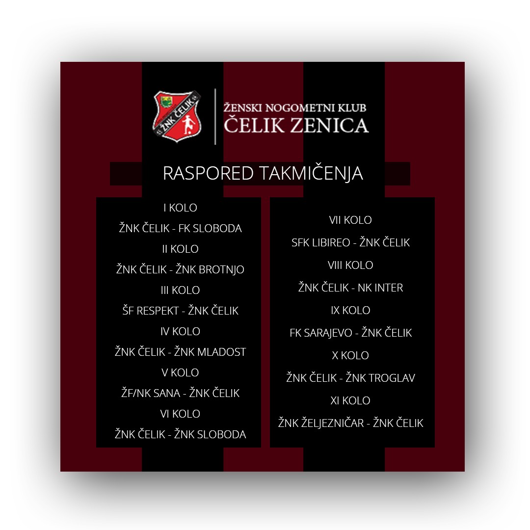 U prvom kolu ŽNK Čelik je domaćin ekipi Slobode iz Tuzle. Utakmica je na rasporedu u nedjelju 29.8.2021. godine u 14,30 sati na B terenu stadiona na Kamberovića polju u Zenici. Službena lica za ovu utakmicu su: glavni sudija Ena Isen (Semizovac), pomoćnice A1 Azra Dilberović (Ilijaš), A2 Amina Ribić (Sarajevo), delegat Naida Halilović (Zavidovići). Pred ovu utakmicu u Zenici uzeli smo izjavu za Zenicablog od Safete Kavaz, nove predsjednice Upravnog odbora ŽNK Čelik