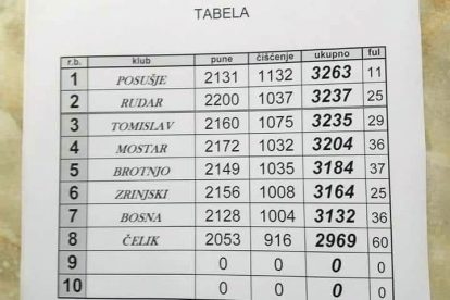 Dramatično je bilo i u borbi za drugo mjesto, gdje je Rudar iz Kaknja za svega dva čunja bio bolji od domaćina KK Tomislav, koji su se na kraju morali zadovoljiti trećom pozicijom.