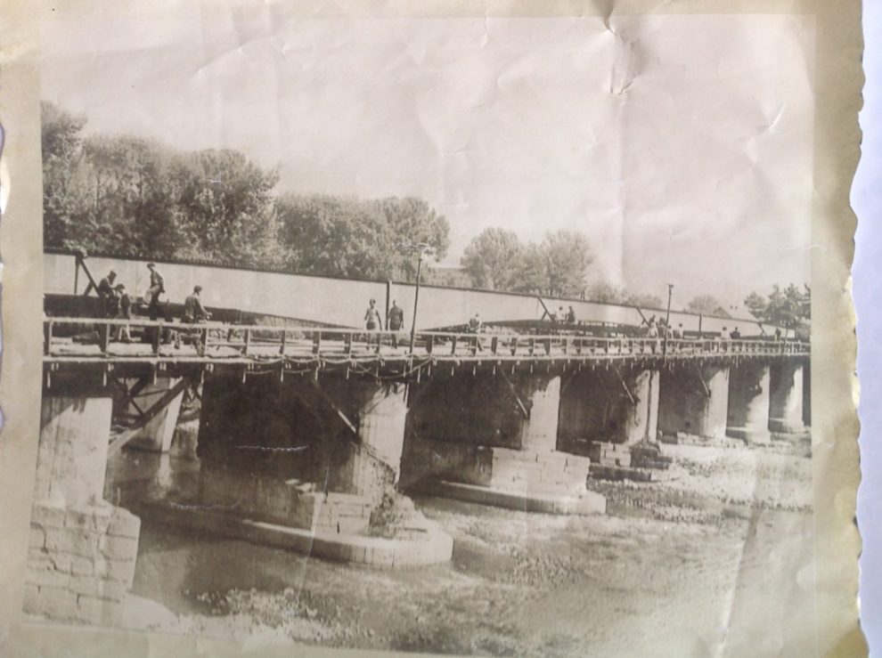 Ali, vratimo se u šezdesete godine prošlog vijeka i “Kuli” drvenog mosta, sa njene lijeve i desne strane, putem između Čurukovića kuće i kuće Ibrahimagića, pa prema drvenom mostu. Prije mezarluka, lijevo je put vodio u garnizon, a desno prema Obrinjcu, preko Babine rijeke. Na Obrinjcu su bile njive Ekinovića: Ahmeda, Muhameda, Mehmedalije, Omera, Hanumice. Niže od Hanumice (Dračo), bila je ljetna kuća Muhameda i njiva (sadašnja Omladinska zadruga, Badmington klub, sve do kraja sadašnjeg placa (HB). Uz put za garnizon, sa lijeve strane je bila kuća Kratine Muhameda, a sa desne kuća Ninkovića. Cesta prema mostu je bila kraj Babine rijeke i naglo motala prema mostu. Samo je stara musala ostajala sa desne strane. Staro turbe je bilo gdje je sada nova musala, a mezarluci su bili na mjestu sadašnje ceste. I eto, dođosmo do mosta. Most je bio drveni, na kamenim kulama, sa drvenim trotoarom preko kojeg je bio nabačen asfalt. Ljeti, kad ugrije, asfalt popusti, pa ekseri predstavljaju veliki problem bosim nogama pješaka na trotoaru, što od topline asfalta, što od golih eksera. Ako hoćeš na Jagnjišće, s ograde na kulu, upravo onu prikazanu na Mirsinoj slici, ideš s kule preko prečki i kosnika na adu. Rutinski, što bi se reklo. Trebalo je znati svaku izbočinu, svako udubljenje, da bi se bezbjedno spustilo u samo podnožje kule.