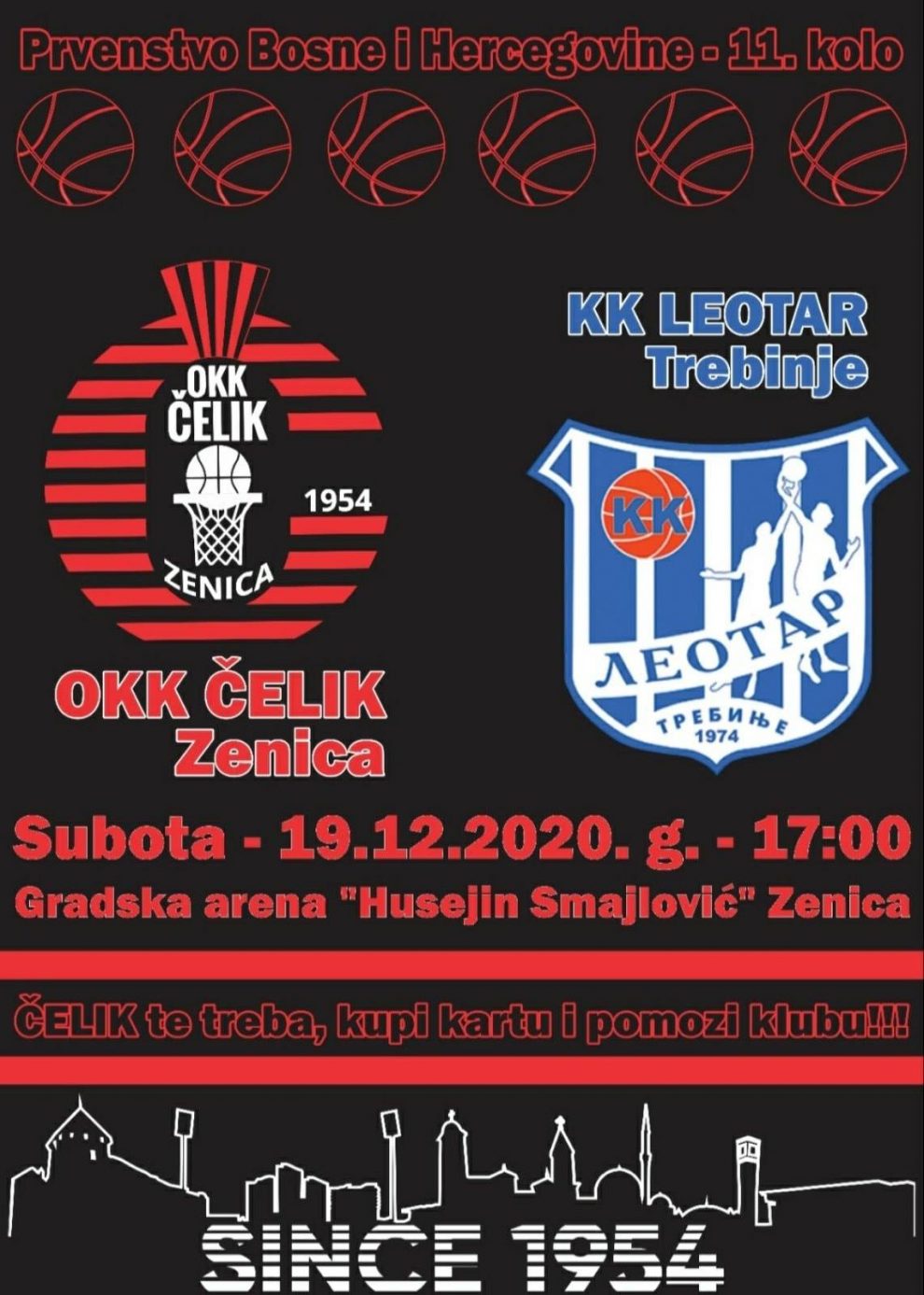 Kupite ulaznicu za utakmicu protiv KK “Leotara” i podrži voljeni klub! OKK ČELIK VAS TREBA! – Na oficijelnoj facebook stranici OKK Čelik objavili su da pozivaju navijače na kupovinu ulaznica za predstojeću utakmicu 11.kola bh.prvenstva u košarci za muškarce između OKK Čelik i KK Leotara iz Trebinja, posljednjoj ovogodišnjoj domaćoj utakmici.