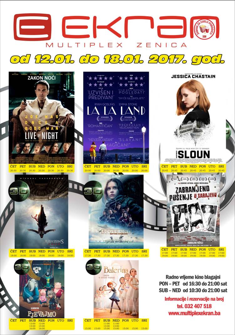 “La La Land”, “Zakon noći” i “Gospođica Sloun” od 12. januara na programu Multiplexa Ekran Zenica – Od četvrtka ne propustite film “La La Land” koji se upisuje se u legendu sa čak 11 nominacija za nagradu BAFTA i osvojenih 7 Zlatnih globusa, sasvim originalni epski gangsterski film „Zakon noći“ i pod rediteljskom palicom oskarovca John Maidena, a prema scenariju Jonathan Perere, stiže drama “Gospođica Sloun” u kome glavnu ulogu tumačiJessica Chastain.