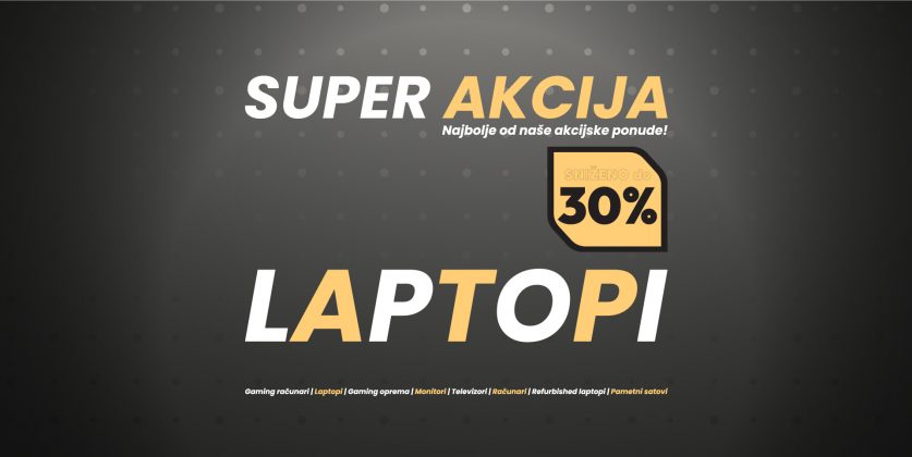 Super akcijska ponuda laptopa sa nevjerovatnim popustom do 30%. Potreban vam je bazni model za neometan rad ili ste ipak zahtjevniji korisnik? Ne brinite, obezbijedili smo za vas sve što vam je potrebno. Izaberite neke od laptopa na AMD i INTEL pogon.