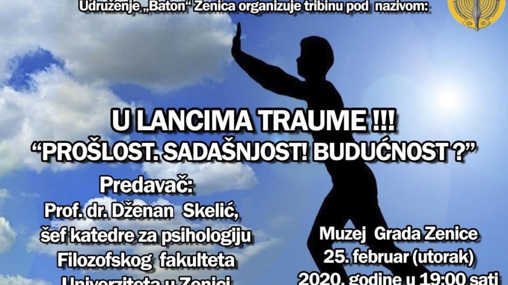 UDRUŽENJE “BATON” ZENICA U cilju sagledavanja realne problematike stradalnika rata i isticanja afirmacijskih vrijednosti života, Udruženje “Baton” Zenica organizuje tribinu pod nazivom: U LANCIMA TRAUME !!! PROŠLOST. SADAŠNJOST! BUDUĆNOST ?” “25 godina...