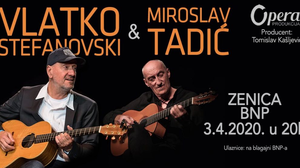Legendarni duo vanserijskih gitara Vlatko Stefanovski i Miroslav Tadić ponovo na pozornici! 03.04.2020 stižu u BNP-u u Zenicu, a sam koncert počinje u 20 sati! Jedan od najboljih gitarskih projekata ovog prostora ponovo će predstaviti svoja umijeća na pozornici u Sarajevu, Mostaru...