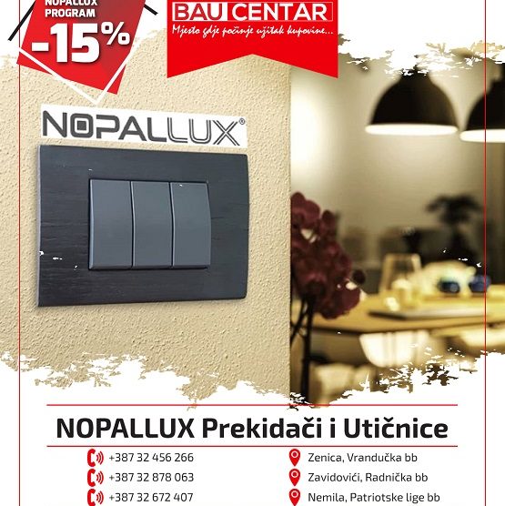 Vikend akcija u Bau centrima kompanije Almy – Vikend akcija u Bau centrima kompanije Almy! Kompletan program Nopallux prekidača i utičnica potražite po akcijskoj cijeni sniženoj 15%. Akcija vrijedi samo za gotovinsko plaćanje te traje 15. i 16.02.2020. god. Trideset godina sa Vama...