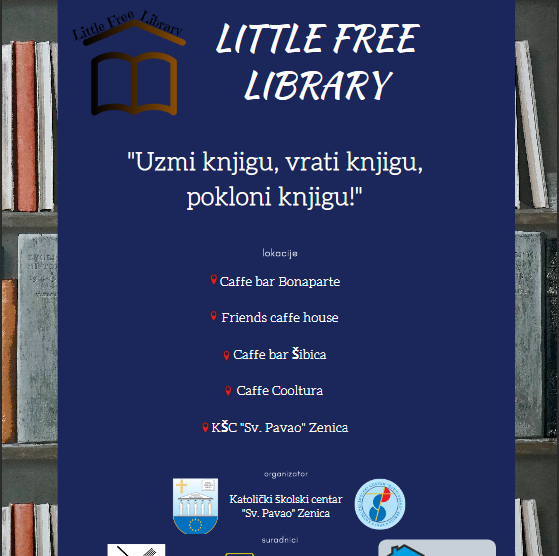 Gradska biblioteka Zenica sudjeluje u projektu “Little Free Library” koji organizuju i realizuju učenici Opće gimnazije KŠC „Sv. Pavao“ Zenica. Police s knjigama, pod nazivom “Little Free Library”, bit će smještene u četiri lokalna coffee bara u Zenici: Caffe bar Bonaparte, FRIENDS...