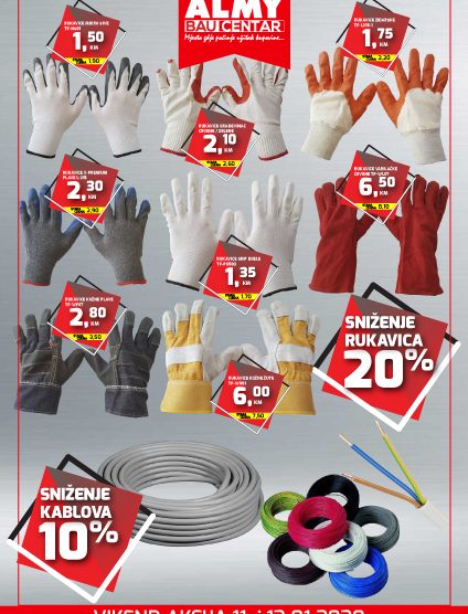 Vikend akcija u Bau centrima kompanije Almy – “Vikend akcija u Bau centrima kompanije Almy! Posjetite naše Bau centre u Zenici i Zavidovićima, za Vas smo spremili sniženje radnih rukavica od 20% i kablova za 10%. Akcija traje 11 i 12.01.2020. god. Trideset godina sa Vama...