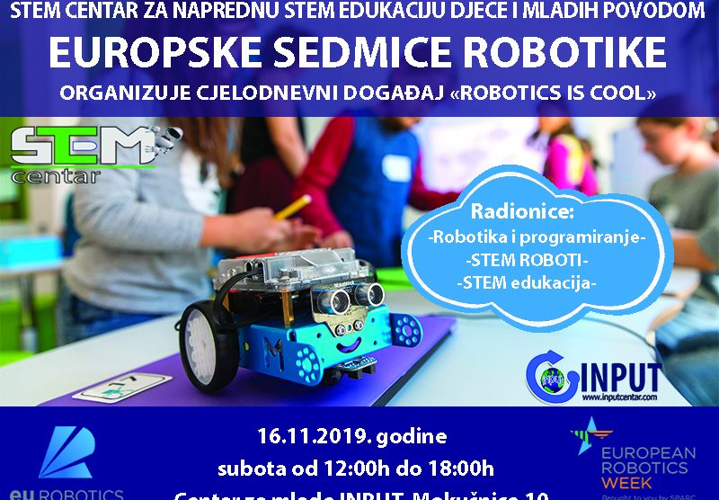 Robotika je cool – Europska sedmica robotike u INPUT Centru – INPUT centar i STEM centar za naprednu STEM edukaciju djece i mladih organizuju jednodnevni događaj povodom Europske sedmice robotike -“Robotika je cool”. Događaj će se održati 16.11.2019. godine, subota...
