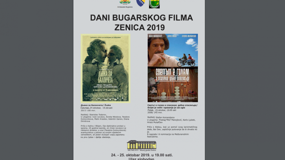 Dani bugarskog filma u Zenici – Ambasada Republike Bugarske srdačno Vas poziva na svečano otvaranje Dana Bugarskog Filma u Zenici sa projekcijom igranog filma „Žvaka“ Film će biti prikazan u Muzeju Grada Zenica, u četvrtak, 24. oktobra 2019. g. u 19:00 sati u u originalnoj verziji...