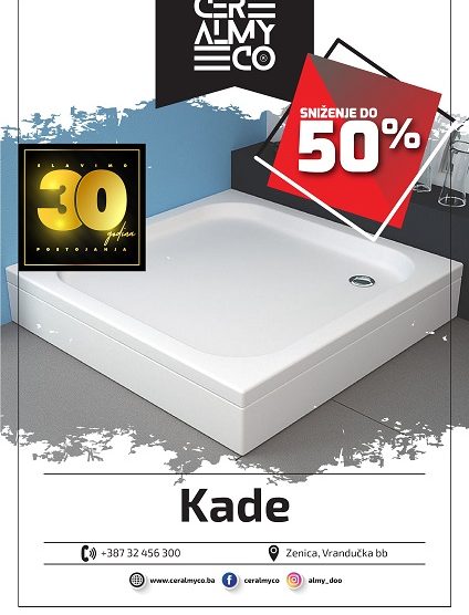 Kompanija Almy slavi 30 godina postojanja: akcijske cijene u salonu Ceralmyco! – Kompanija Almy slavi 30 godina postojanja! Veliki izbor kada za Vaše kupatilo po nevjerovatnim akcijskim cijenama sniženim i do 50% u salonu Ceralmyco! Kada tuš bijela 80×80 redovna MPC: 110,00KM...