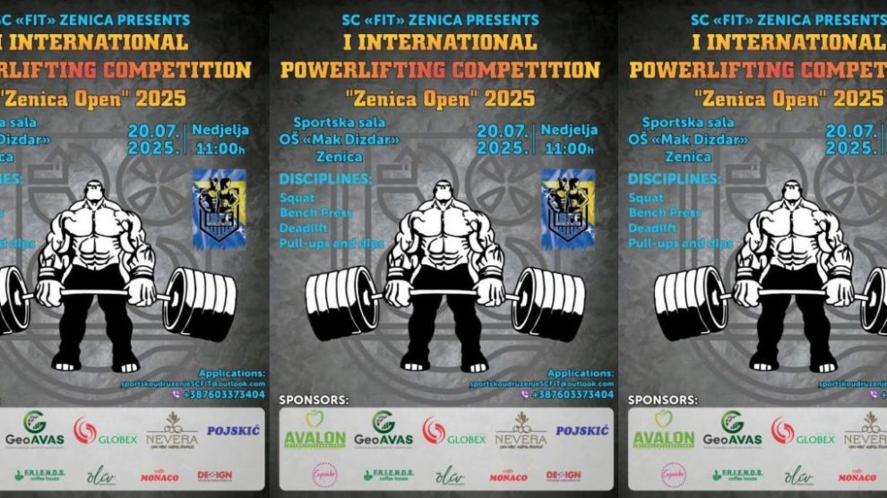 Zenica će 20. jula 2025. godine biti epicentar regionalne i međunarodne powerlifting scene, kada će u sportskoj sali Osnovne škole „Mak Dizdar“ biti održano I Međunarodno takmičenje u powerliftingu „Zenica Open 2025“. Ovaj prestižni sportski događaj organizuje Federacija IBFF Worldwide...