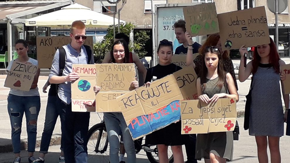 FOTO: Protest zbog ignorisanja problema sa klimatskim promjenama – Protestnom šetnjom centralnom ulicom Zenice na + 33*C, a zatim prigodnim obraćanjem na Trgu Alije Izetbegovića, kod Bosanke, 20-ak srednjoškolaca u pratnji nekoliko svojih nastavnika, ukazali su na neizbježnost...